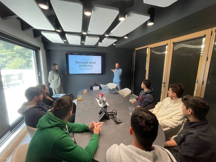 Η επίσκεψη έγινε στο πλαίσιο του μαθήματος «Μέσα Κοινωνικής Δικτύωσης στη Διεθνή Αγορά», δίνοντας στους σπουδαστές την ευκαιρία να δουν πώς το digital marketing στηρίζει στην πράξη τον τομέα των εξαγωγών.