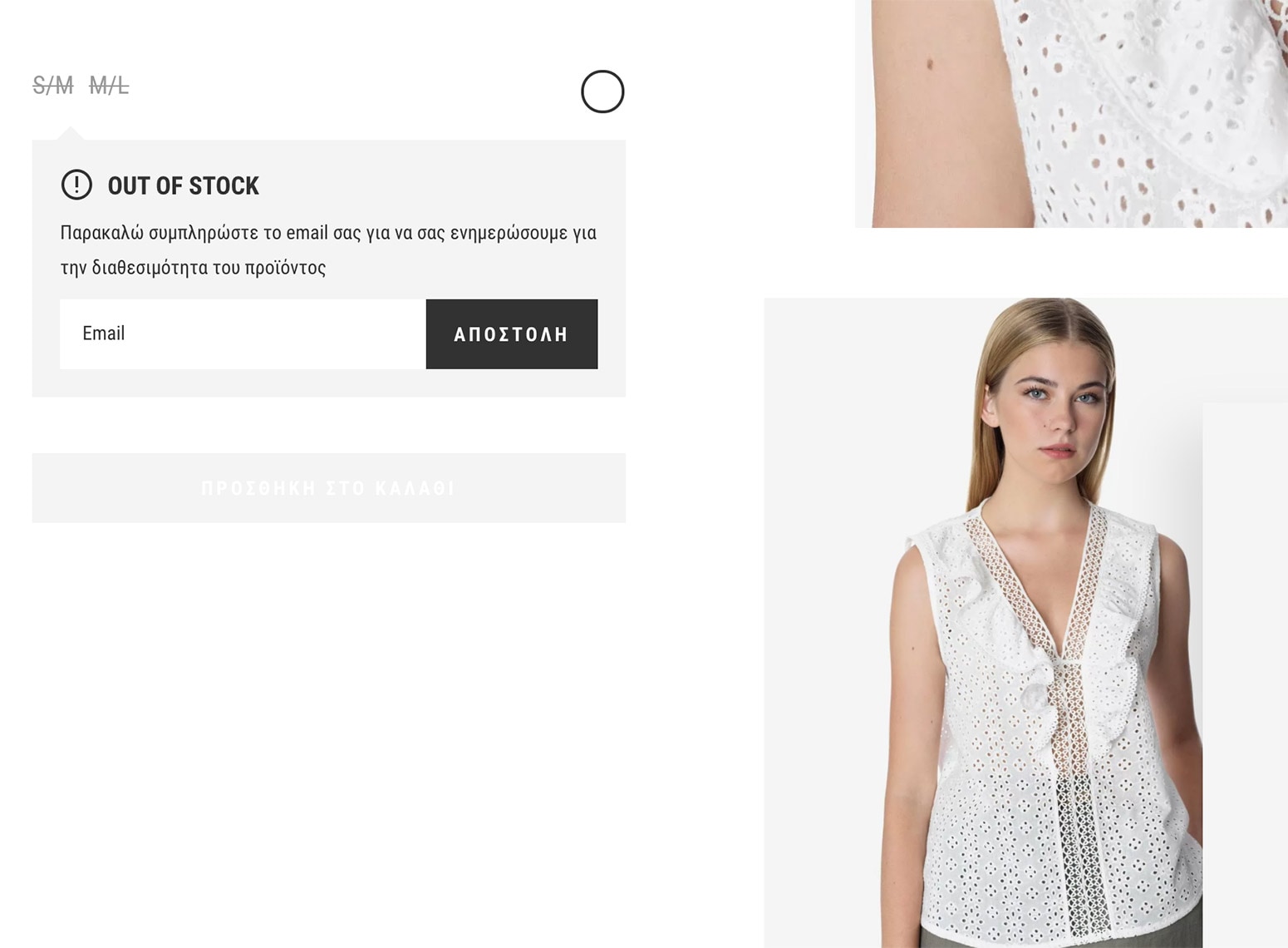 Αν κάποιο προϊόν έχει εξαντληθεί, δίνεται η δυνατότητα στον χρήστη να εισάγει το email του, ώστε να ενημερωθεί αυτόματα όταν ξαναέρθει.
